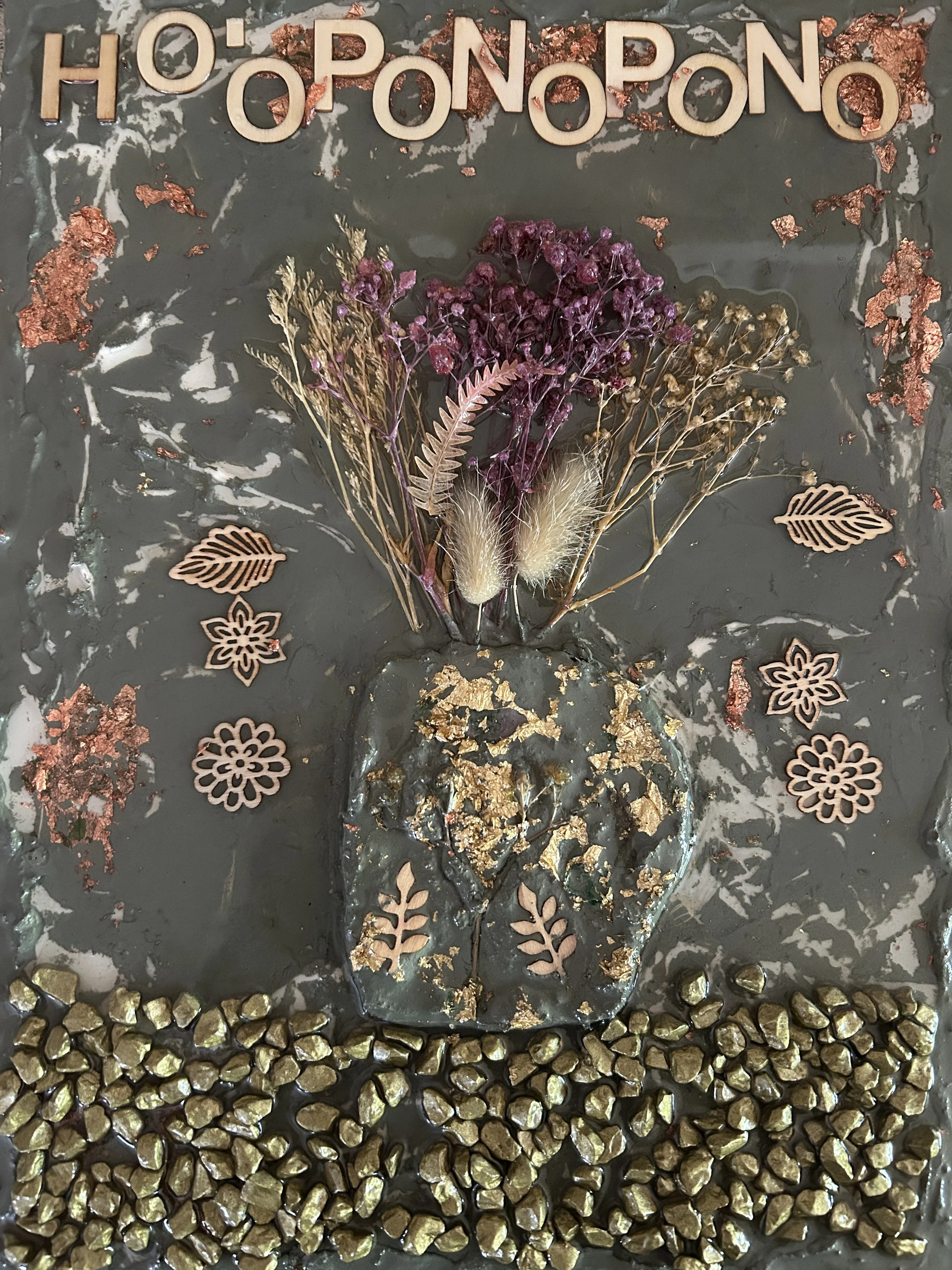 In diesem Workshop erschaffst du dein ganz persönliches Wandbild – ein Unikat, das durch Struktur, Schichtung und Glanz beeindruckt. Mit hochwertigen Materialien wie Epoxidharz, Strukturpaste, Pigmenten, Blattmetall, Naturmaterialien und kreativen Details gestaltest du ein Kunstwerk, das deine Intuition und deinen Ausdruck sichtbar macht.